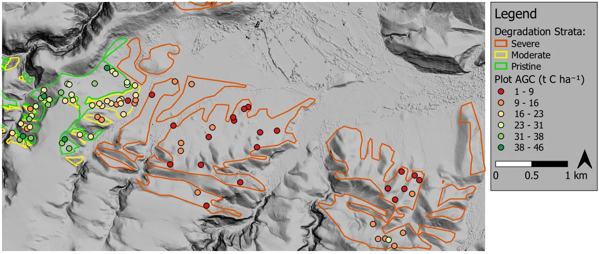 Various approaches for modelling AGC were evaluated using the ground truth. Straightforward linear regression models using high resolution multispectral satellite (WorldView-3) imagery performed well. The code repository and related paper contain more details on the data, method and performance.